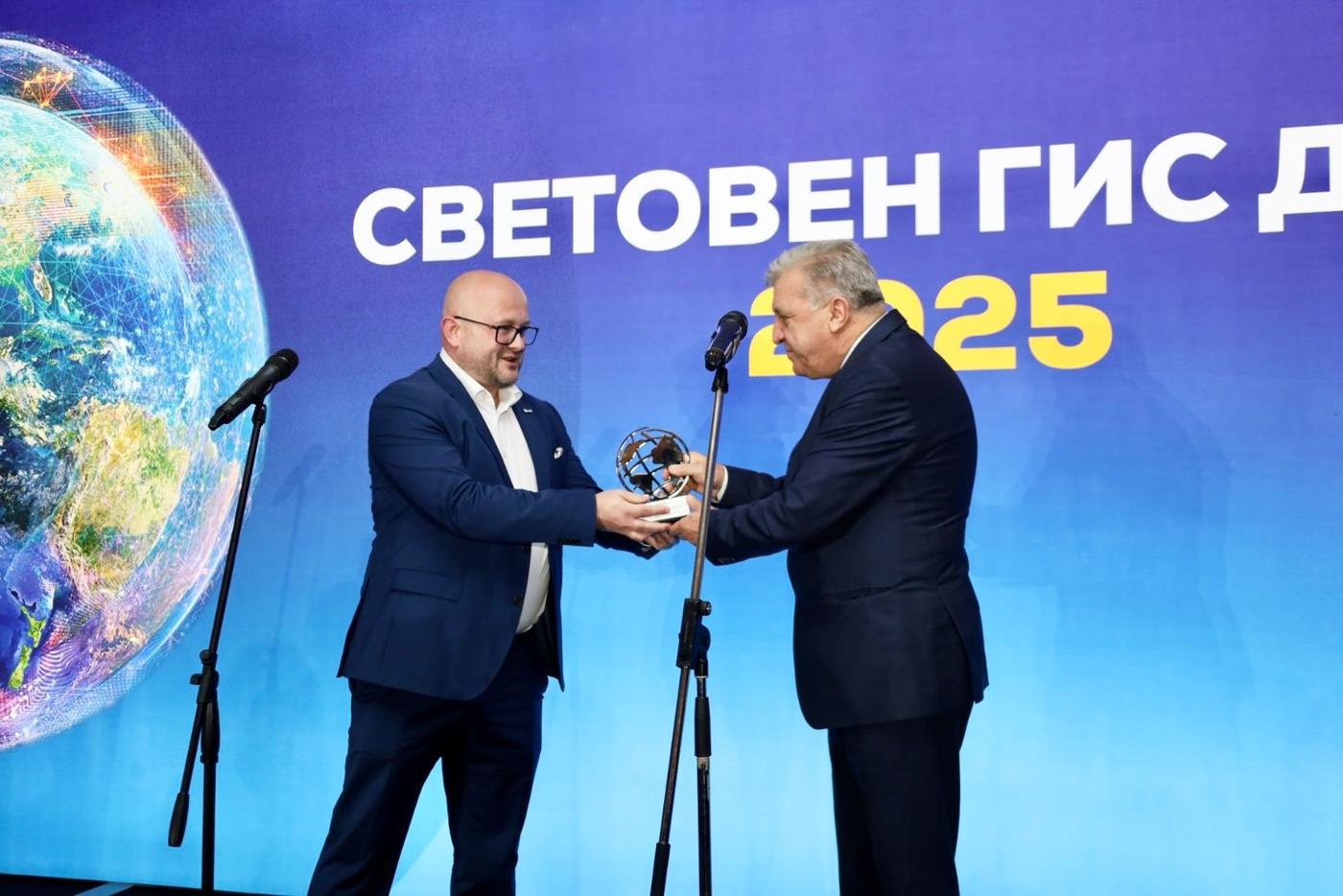 Министерството на околната среда и водите получи награда в категория „Централна власт“ за своя дългогодишен принос и специални постижения в прилагането на географски информационни системи (ГИС).Отличието беше връчено на министъра на околната среда и водите Манол Генов от Аркадиус Садковски, глобален мениджър „Решения за картографиране на реалността“ в ESRI, на тържество по случай Световния ден на ГИС.