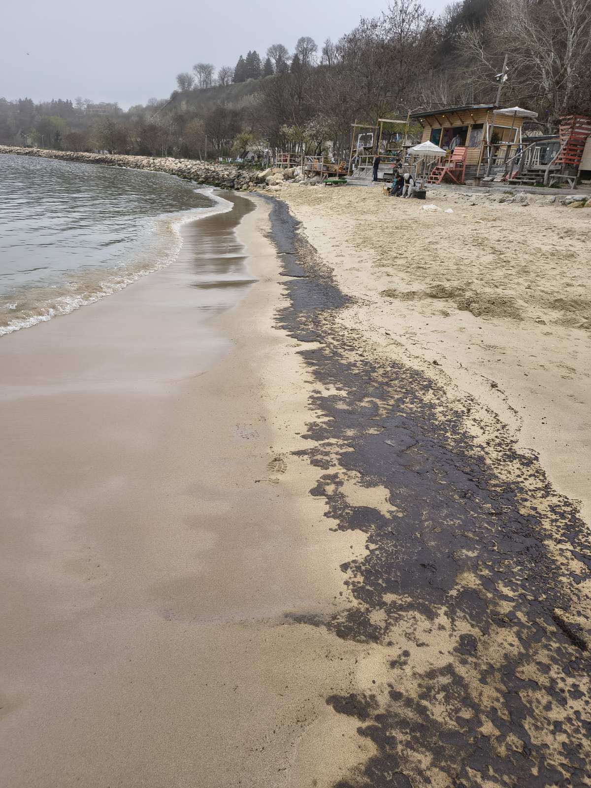 При проверката е установено замърсяване с нефтопродукти на пясъчната ивица на границата с морето. В някои участъци са установени замърсени с нефтопродукти водорасли, изхвърлени от морето, а в други участъци – образуван слой нефтопродукти, изхвърлен от морето с тъмнокафеникав цвят и характерна миризма. По цялата повърхност на морската вода в крайбрежната зона, както и във вътрешността около буните се наблюдава опалесценция по повърхността на водата. По време на проверката непосредствено срещу обходения район в морето има плавателни съдове, които изчакват на рейд.
